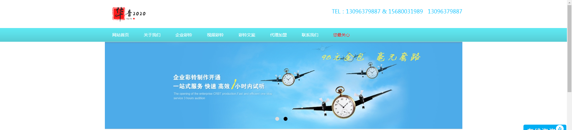 华音彩铃制作中心 是成都华音企业管理咨询有限公司,为大中小企业提供:企业音频彩铃,企业视频彩铃,制作,上传,开通,等一站式服务网站! 我们以低价求生存,以老客户满意后转介绍求发展! 拥有先进的录音设备,专业的铃音制作人员,为全国各地的移动、联通、电信用户,个人、企业用户,提供音频彩铃,视频彩铃,制作上传开通售后维护一条龙服务! 企业音频彩铃,